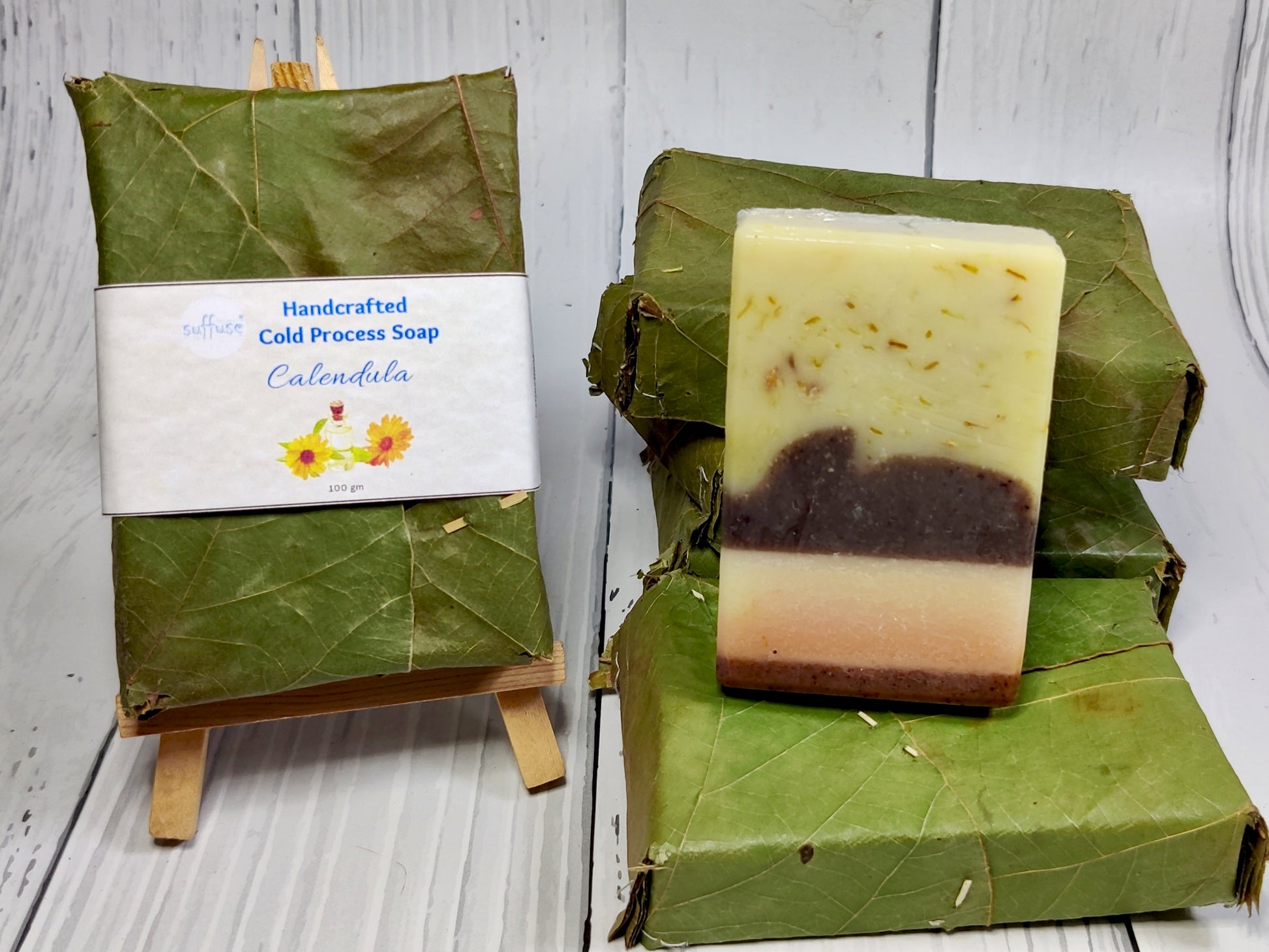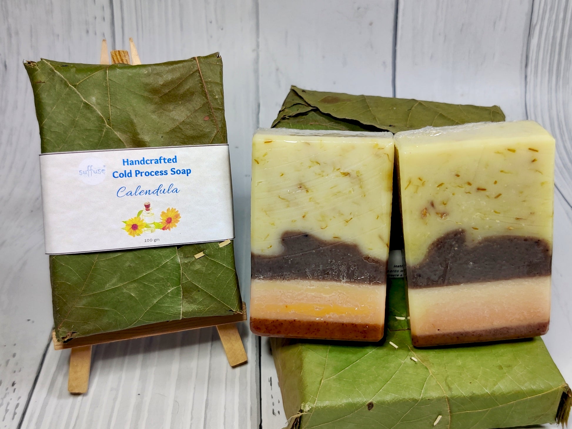 Swirled in soft botanical tones and topped with real calendula petals, each bar is as beautiful as it is calming.