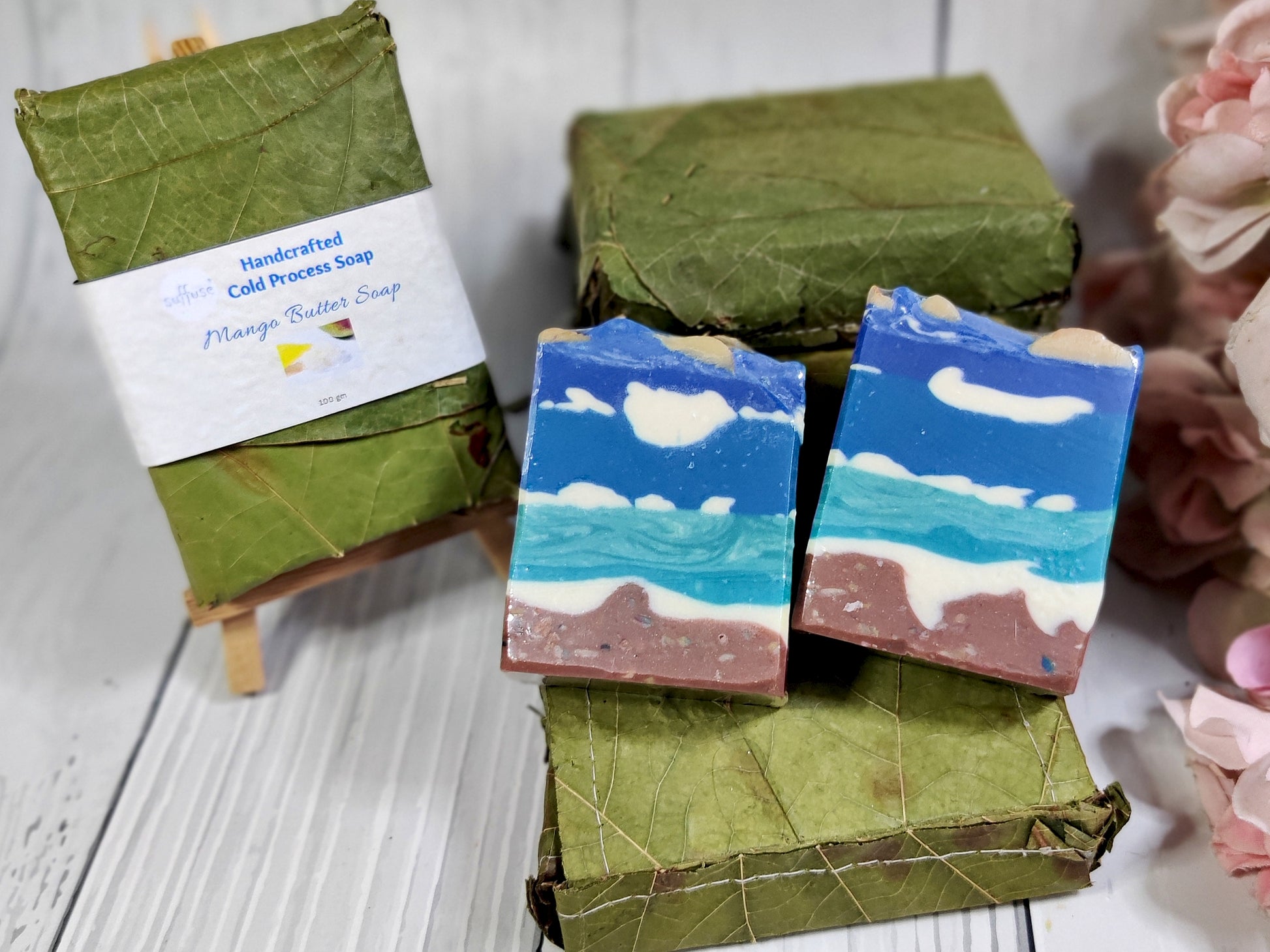 Indulge your skin with this handcrafted cold process soap, enriched with deeply nourishing oils and creamy mango butter. Designed with three stunning styles - a relaxing hammock on the beach, dynamic ocean waves, and elegant swirly waves. Each bar brings a touch of tropical tranquility to your skincare routine.