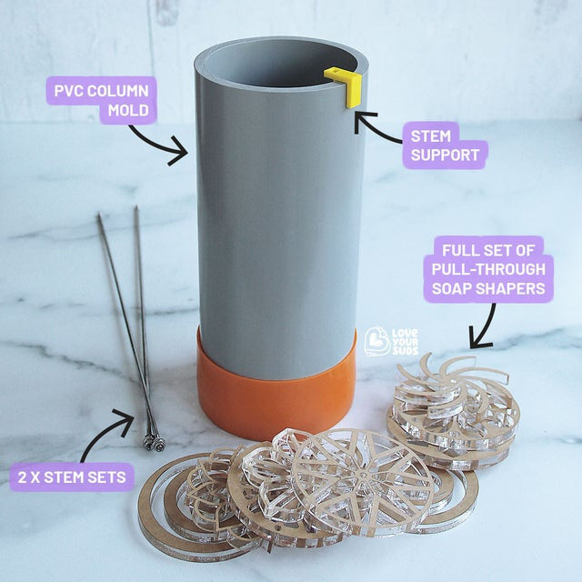 PVC Column Mold Plus Soap Shaper Set (9) – Acrylic from Love Your Suds